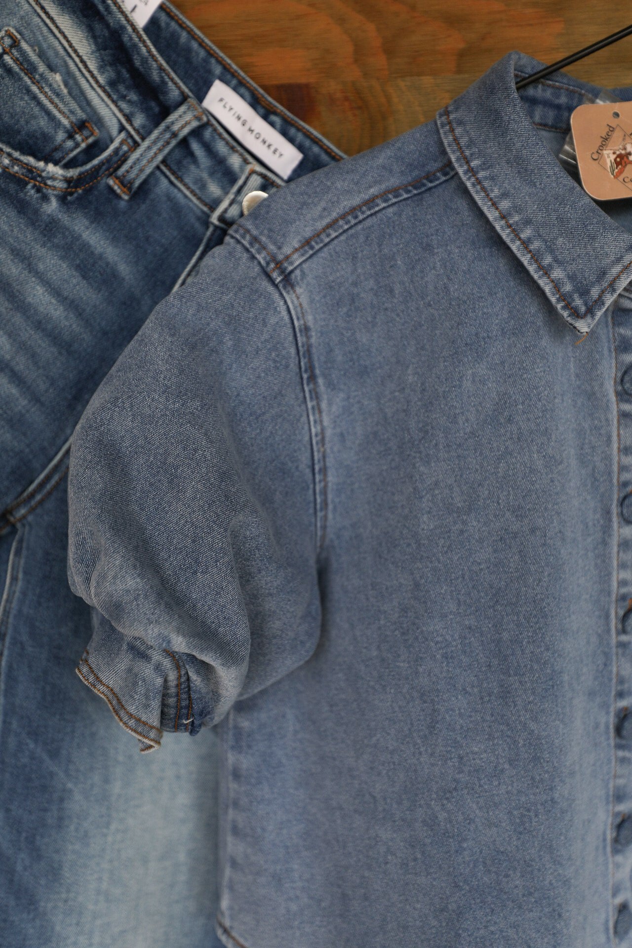 Redfield Puffed Short Sleeve Top in Denim